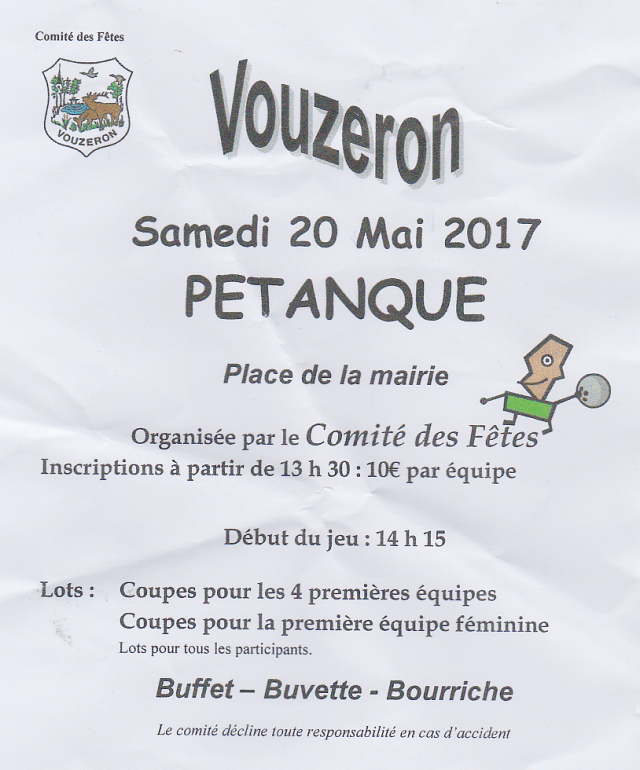 Le comité des fêtes organise le samedi 20 mai 2017 un après-midi pétanque.