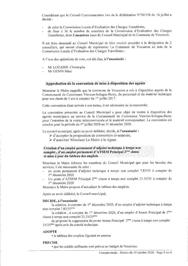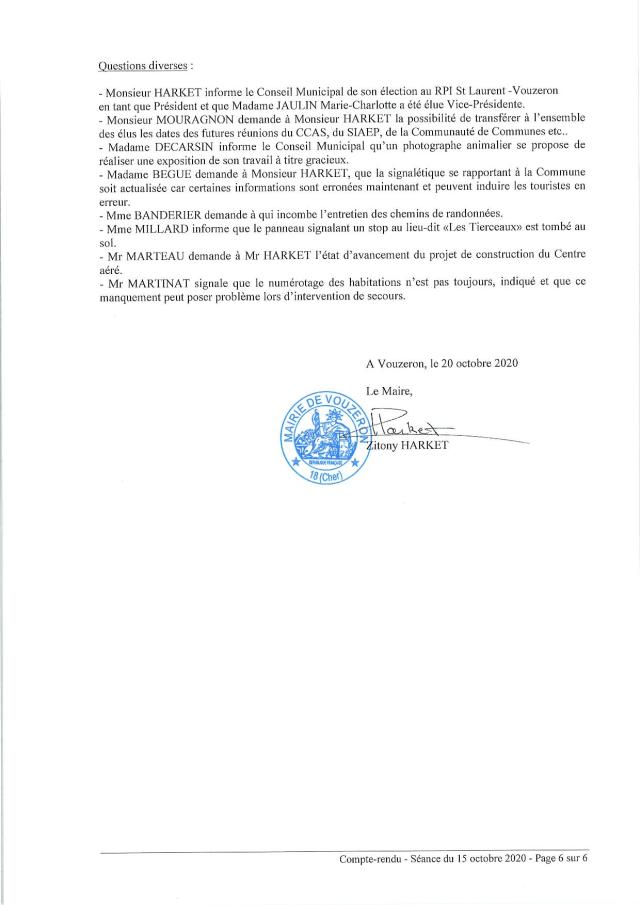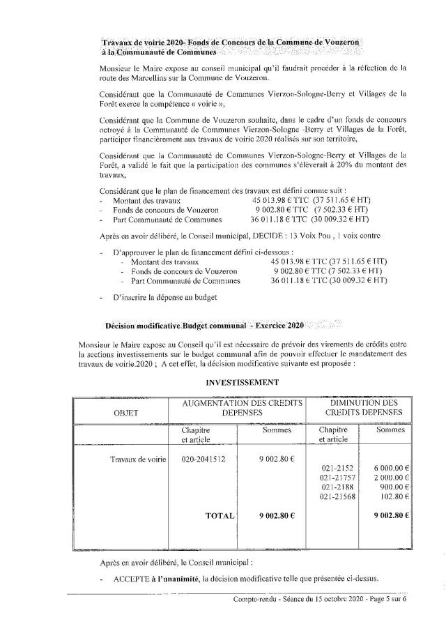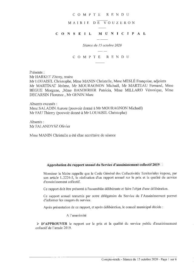 Compte-rendu du conseil municipal du 15 octobre 2020