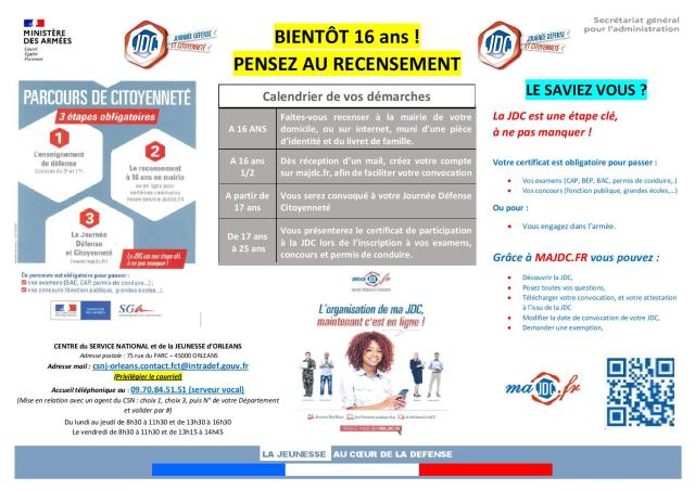 Bientôt 16 ans ! Pensez au recensement …