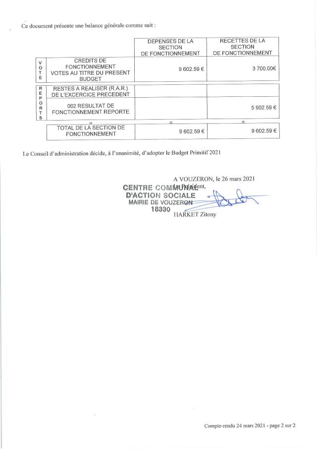 Compte rendu du Conseil d’Administration du Centre Communal d’Action Sociale de Vouzeron