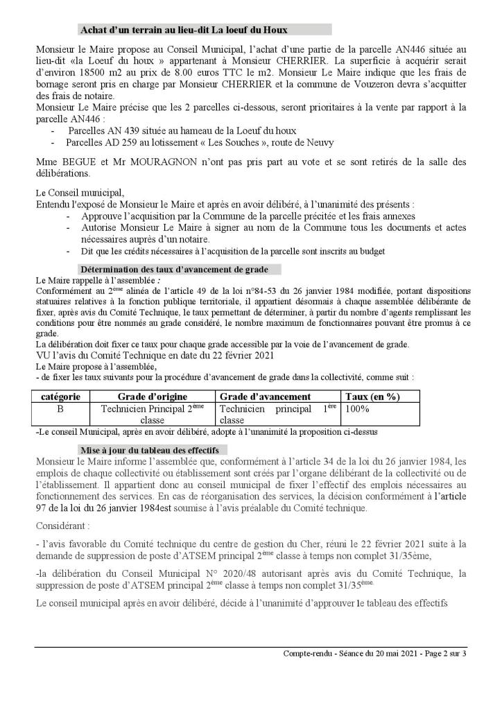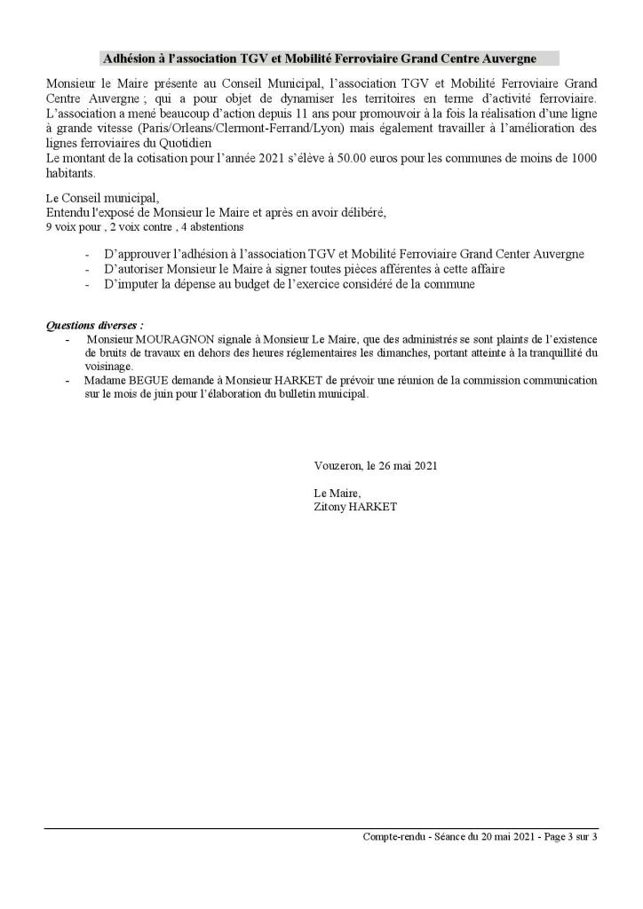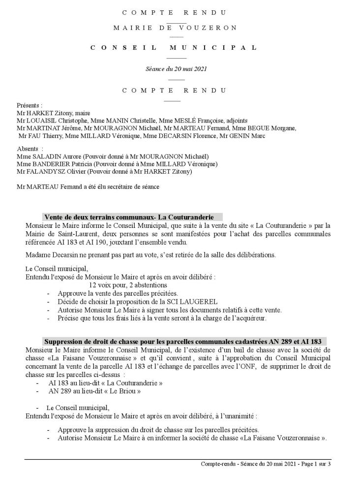 Compte rendu du Conseil Municipal du 20 mai 2021