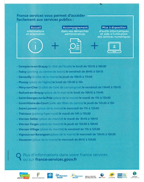 Permanences FRANCE SERVICES sur votre commune et les communes extérieures Pendant les vacances d’été, il n’y aura pas de permanences les : Mercredi 4 août 2021Mercredi 11 août 2021Mercredi 18 août 2021 Partager : Cliquer pour envoyer un lien par e-mail à un ami(ouvre dans une nouvelle fenêtre) E-mail Cliquer pour partager sur X(ouvre dans une nouvelle fenêtre) X Cliquez pour partager sur Facebook(ouvre dans une nouvelle fenêtre) Facebook Cliquez pour partager sur LinkedIn(ouvre dans une nouvelle fenêtre) LinkedIn Cliquez pour partager sur WhatsApp(ouvre dans une nouvelle fenêtre) WhatsApp Cliquer pour partager sur Bluesky(ouvre dans une nouvelle fenêtre) Bluesky Similaire