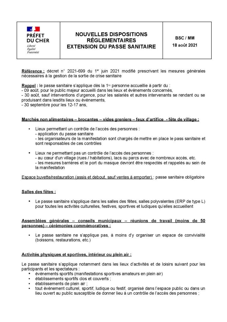 Nouvelles dispositions réglementaires – Extension du pass sanitaire