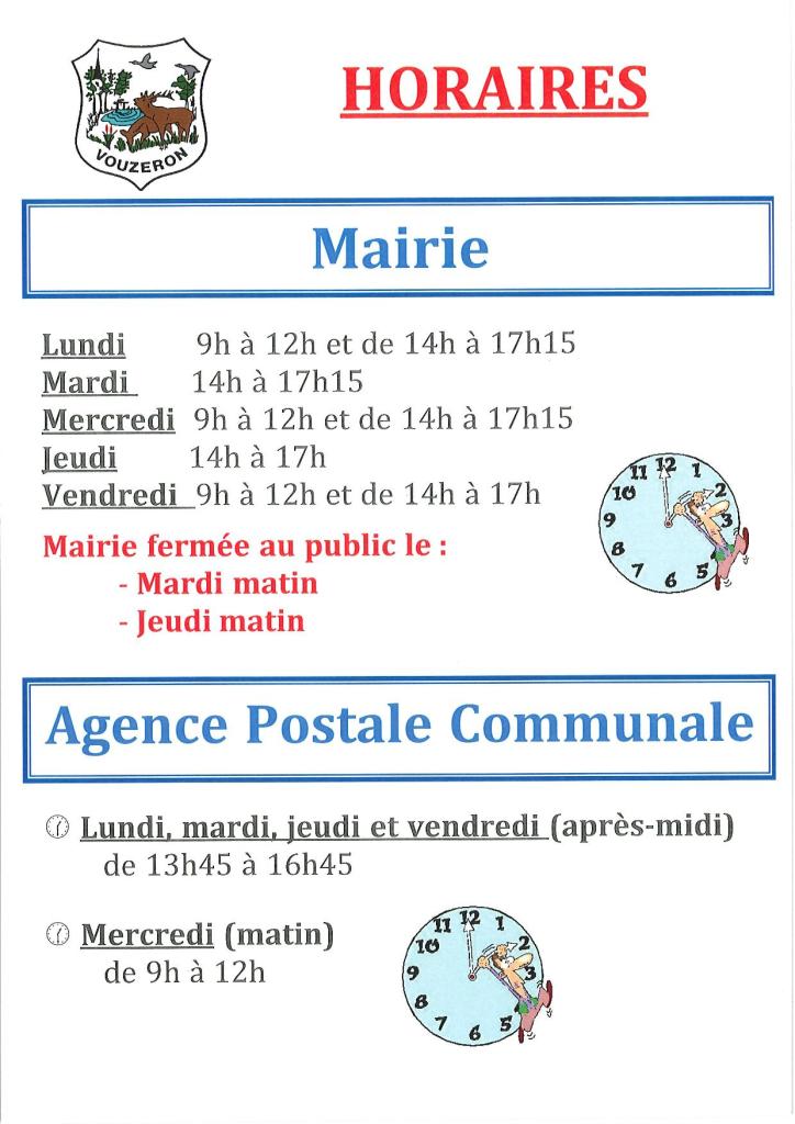 Changement d’horaires concernant la mairie et l’agence postale communale