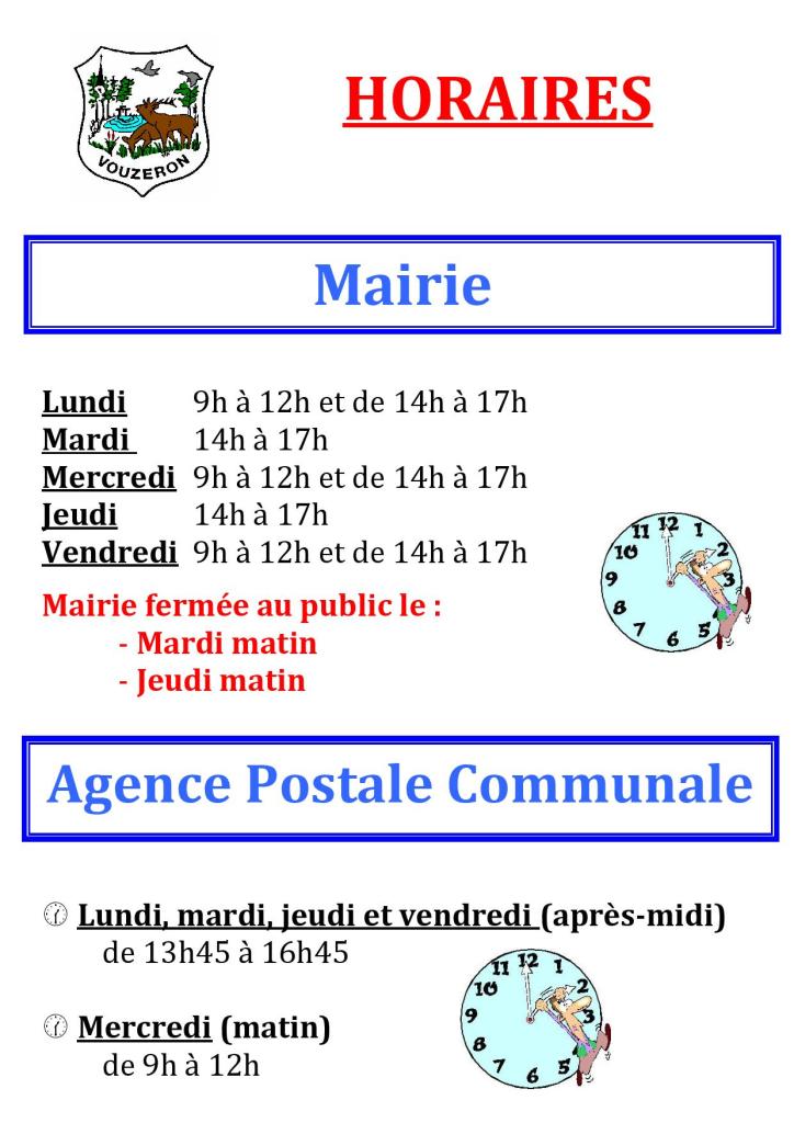 Rappel des horaires de la Mairie et de l’Agence Postale