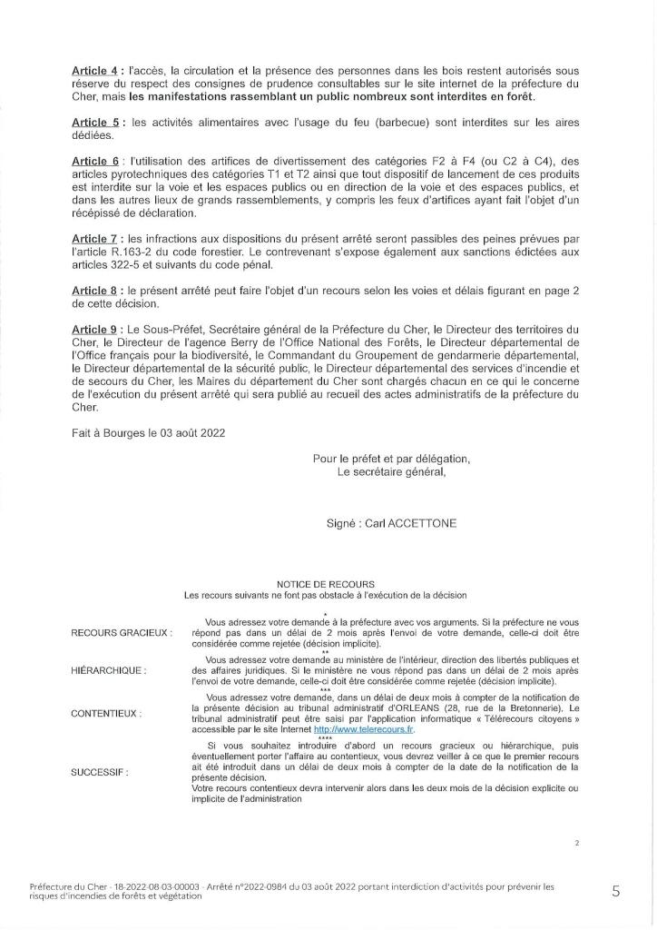 Arrêté portant interdiction d’activités pour prévenir les risques d’incendies de forêts et végétation