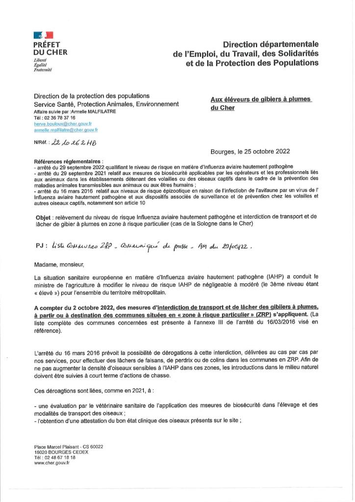 Risques gibiers à plumes