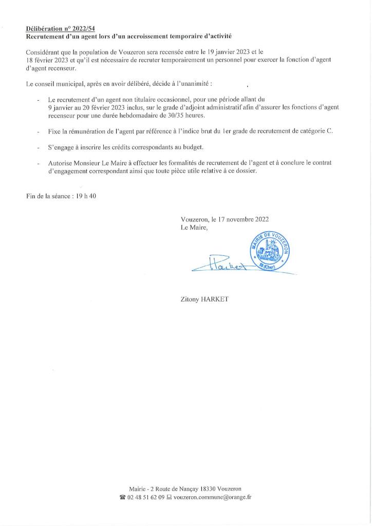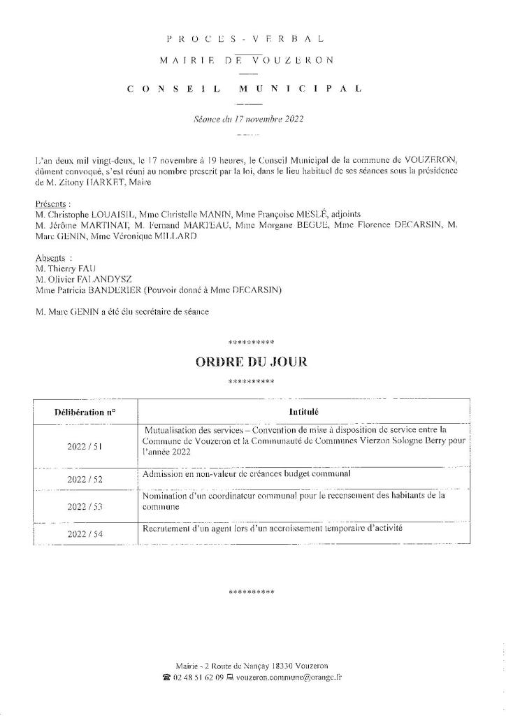 Procès verbal du Conseil Municipal du 17 novembre 2022