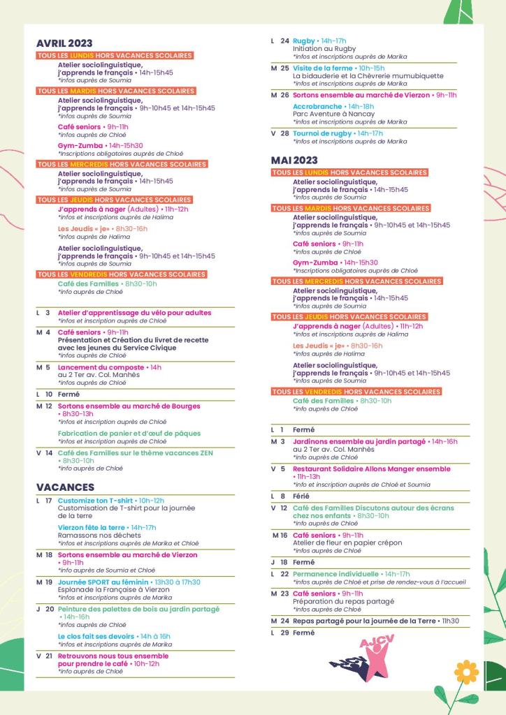 Programme du Centre Social du Clos du Roy