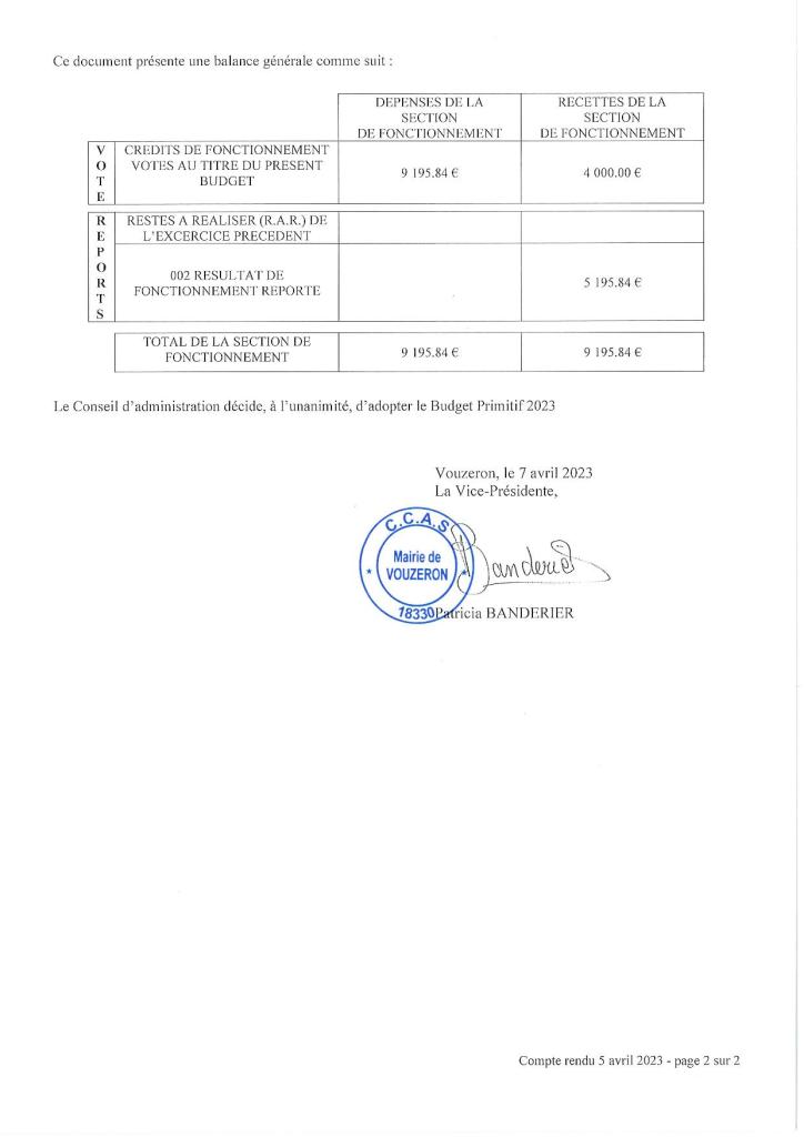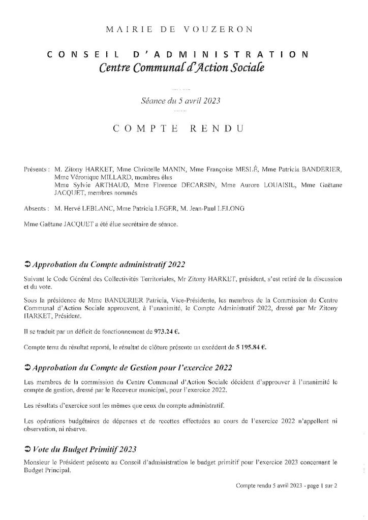 Compte rendu du conseil d’administration du CCAS du 5 avril 2023