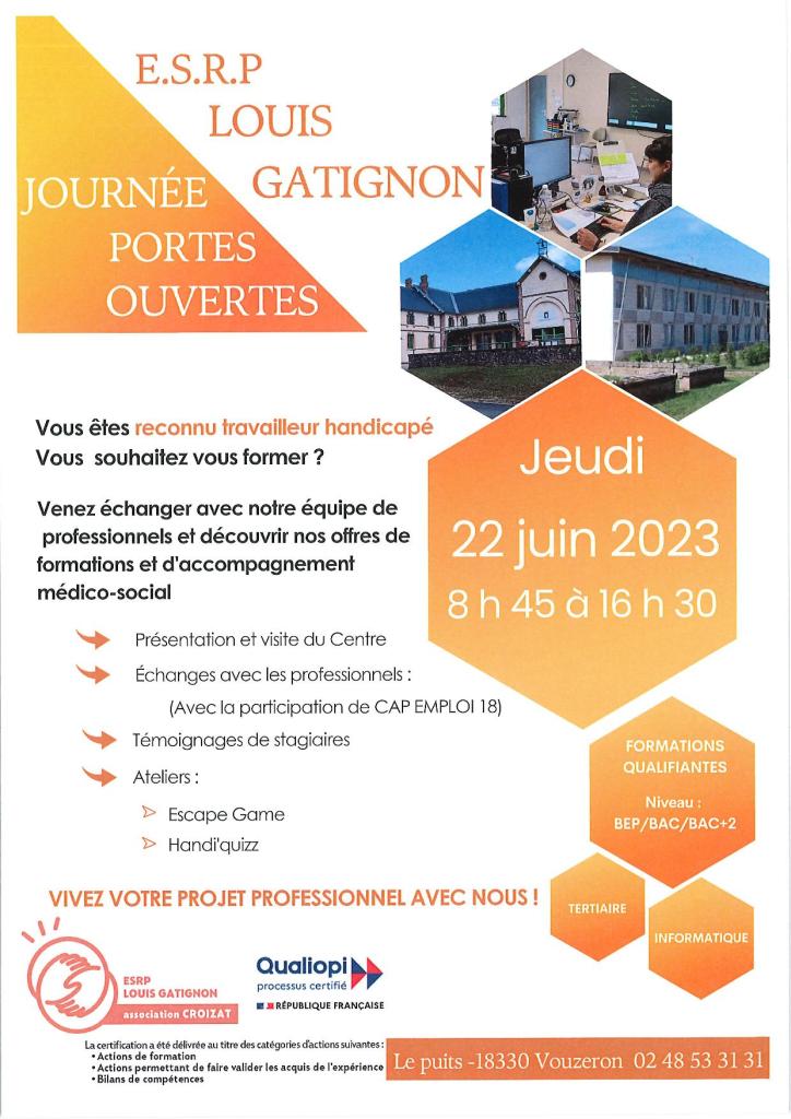 Journée Portes ouvertes ESRP Louis Gatignon le jeudi 22 juin de 8 h 45 à 16 h 30