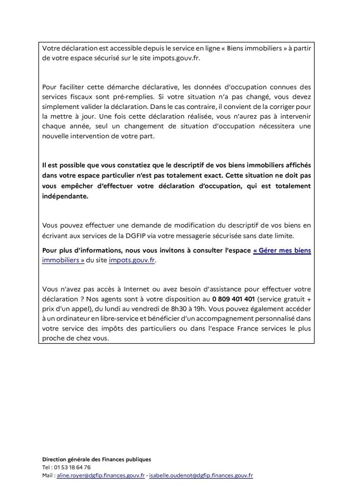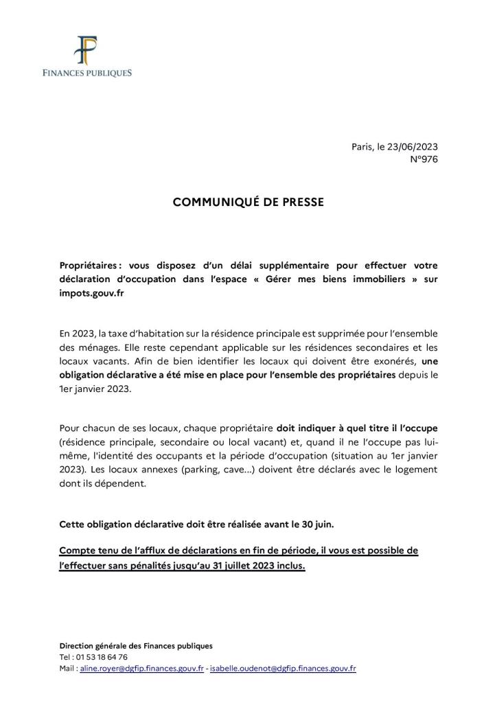 Délai supplémentaire pour effectuer la déclaration d’occupation « Gérer mes biens immobiliers » sur impots.gouv.fr