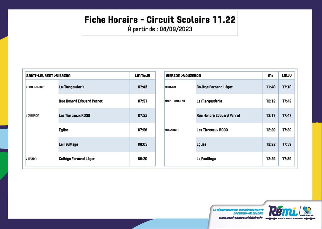 Horaires du transport scolaire pour les collégiens