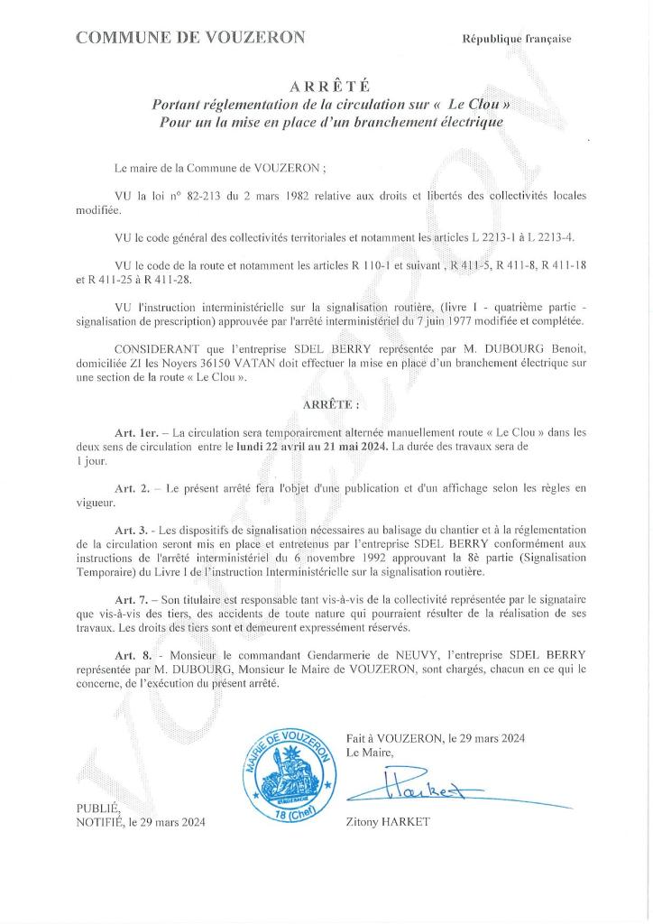 Arrêté de circulation « Le Clou »