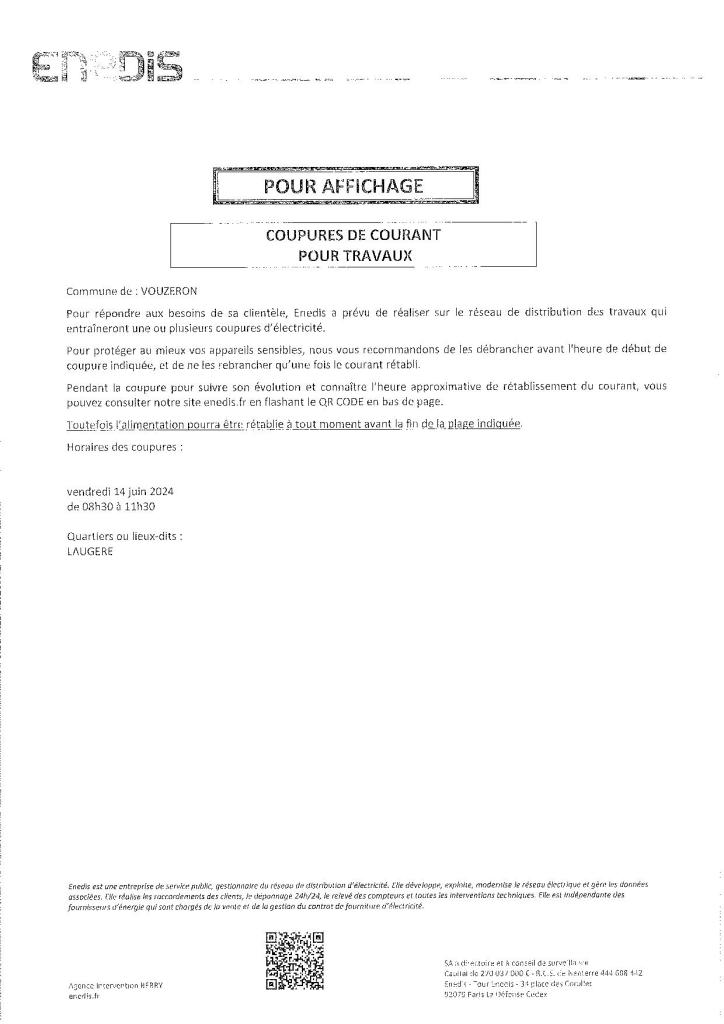 Coupure ENEDIS le 14 juin LAUGERE