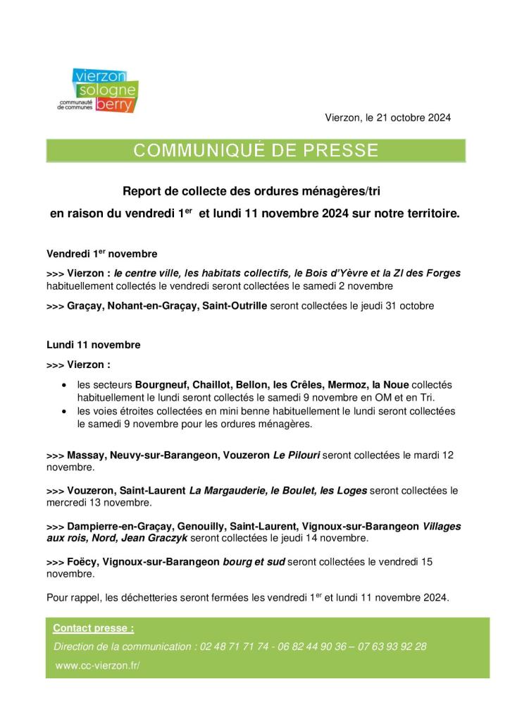 Report de collecte des ordures ménagères/tri