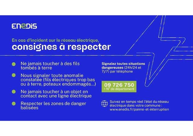 En cas de danger visible, fil à terre, nous vous recommandons d’appeler en priorité le Centre d’Appel Dépannage au numéro réservé uniquement aux élus et services communaux 0811 01 02 12 + code postal de votre commune.