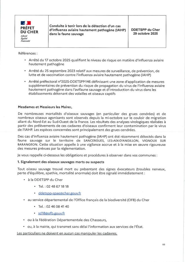 Conduite à tenir lors de la détection d’un cas influenza aviaire hautement pathogène dans la faune sauvage