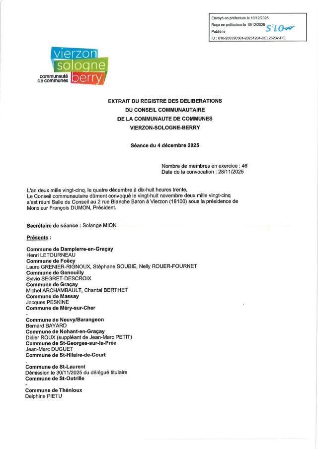 Délibération du Conseil communautaire de la CCVSB