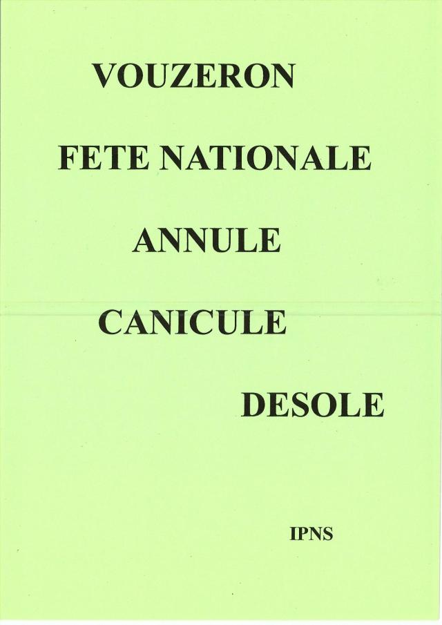 Au vu des températures et de l’état de sécheresse du champs, le feu d’artifices du 13 juillet est annulé