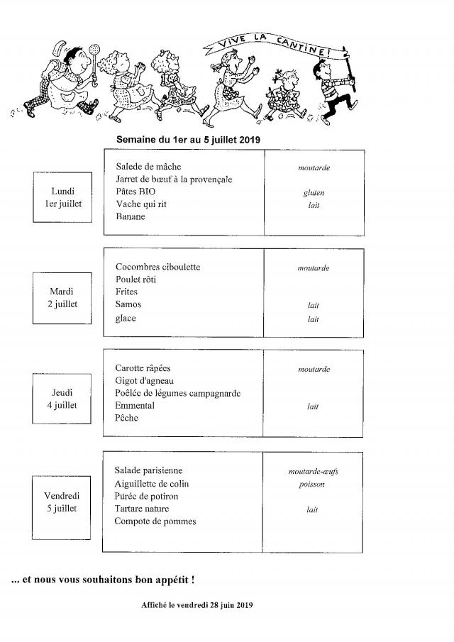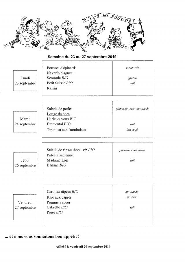 Menu du 30 septembre au 4 octobre 2019 Le septembre 27, 2019septembre 27, 2019 par docprof02dans MENU CANTINE