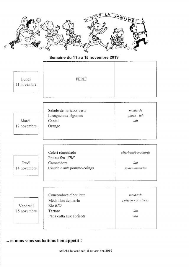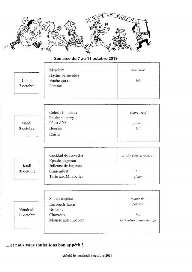 Menu du 7 au 11 octobre 2019 Le octobre 10, 2019octobre 10, 2019 par docprof02dans MENU CANTINE