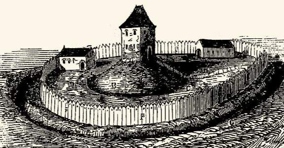 C’est peut-être suite à ce changement d’objectif, ou lors d’une reconnaissance dans le but de ravitailler l’armée principale que les Anglais ont attaqué notre village. Le seigneur Georges Damoiseau, seigneur de Vouzeron, tente une défense à partir de son château de la Motte. Nous n’avons malheureusement pas de descriptif de ce système défensif qui devait être situé sur une motte castrale. Souvent appelée « motte féodale », ce type de fortification était composée d’un remblai de terre circulaire. Entourée d’un fossé rempli d’eau, elle était protégée par une palissade généralement en bois. Un fortin y était aménagé avec une tour de guet analogue à un donjon. Ces ouvrages ont été érigés entre le Xème et XIIème siècle. Par la suite, certains châteaux en pierre ont été construits au même endroit. On peut supposer que cette enceinte ne pouvait accueillir que peu d’hommes et que face aux Anglais, le seigneur de Vouzeron savait que son combat serait voué à l’échec. Il sera d’ailleurs massacré ainsi que sa femme Marguerite et ses enfants, son château détruit et brûlé.